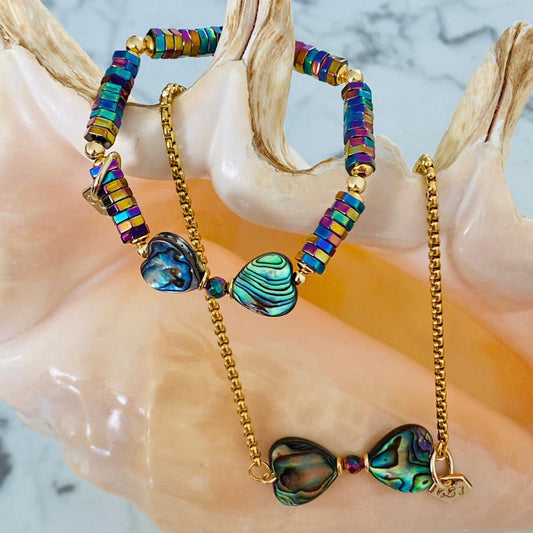 Aquamarine & Abalone Mother Of Pearl Necklace