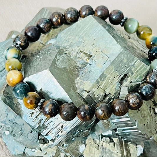 Bronzite & Honey Blue Tigereye Men Bracelet