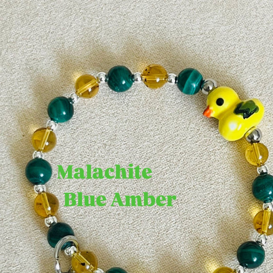 Blue Amber & Malachite Faithful Duckie Bracelet