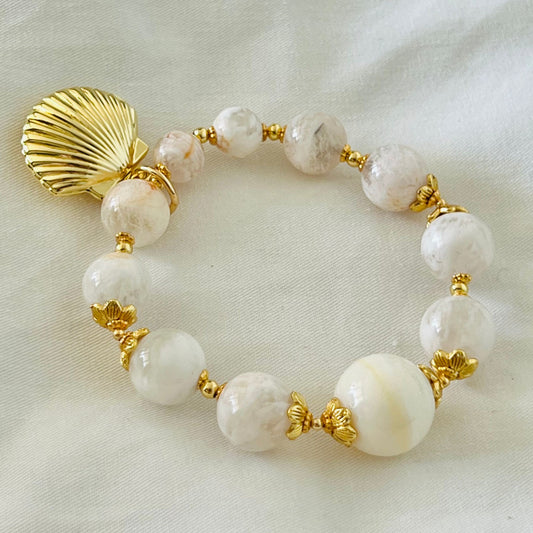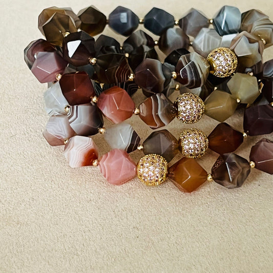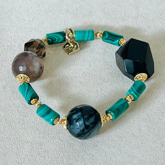 Raw Smoky Quartz, Rutilated Black Quartz, Botswana Agate & Malachite Bracelet