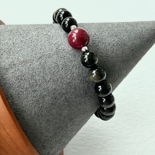 Cinnabar & Gold Sheen Obsidian Men Bracelet