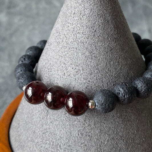 Garnet & Lava Stone Men Bracelet