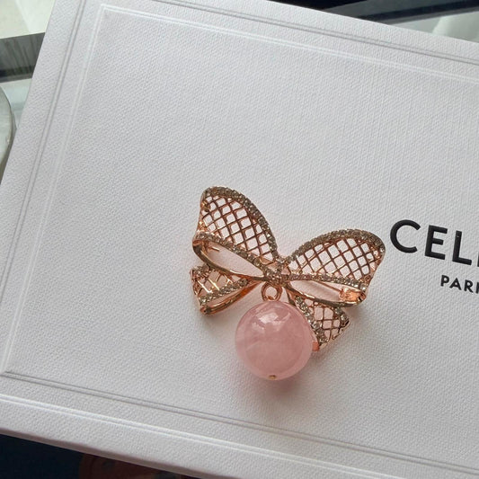Madagascar Rose Quartz Ribbon Brooch