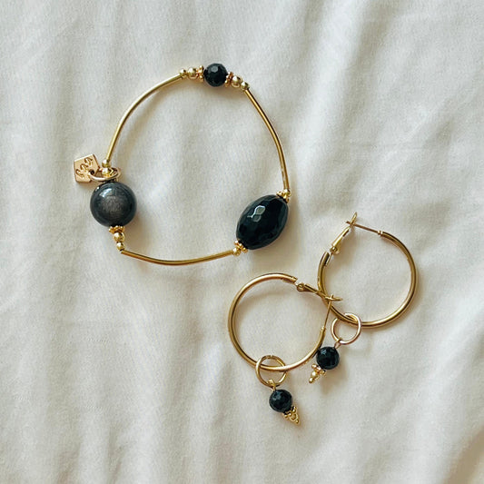 Onyx, Silver Sheen Obsidian & Spinel Juicy La Grace Bracelet