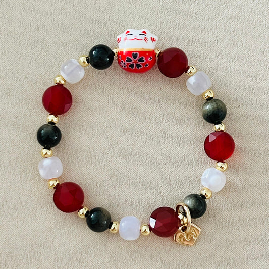 Gold Sheen Obsidian, Red Agate & Snowflake Agate Money Kitty Bracelet