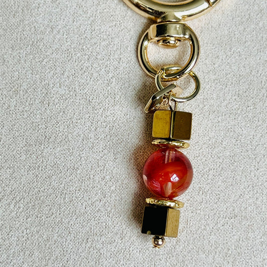 Red Hematoid & Gold Hematite Bag Charm/ Key Ring