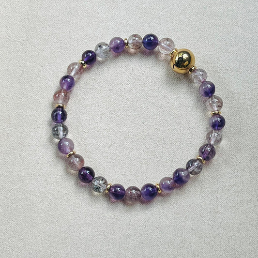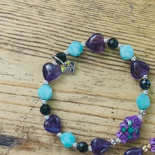 Amazonite, Amethyst & Black Tourmaline Grape Koi Bracelet