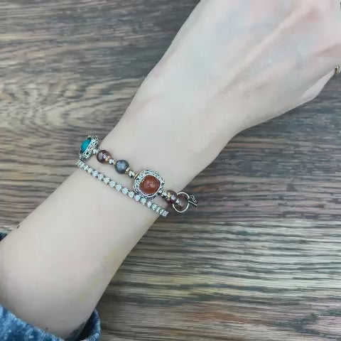 Black Onyx, Citrine & Turquoise Hermes Birdie Bracelet