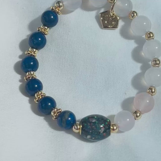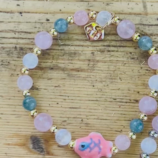 Aquamarine, Rose Quartz & Selenite Rose Koi Bracelet