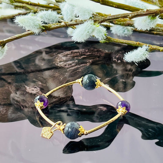 Iolite & Gold Hematite Bag Charm/ Key Ring
