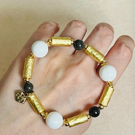 White Coral, Moonlight Sunstone & Amazonite Bracelet