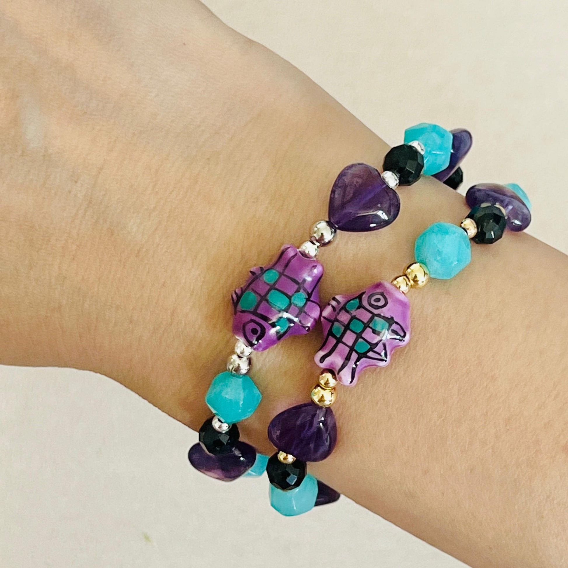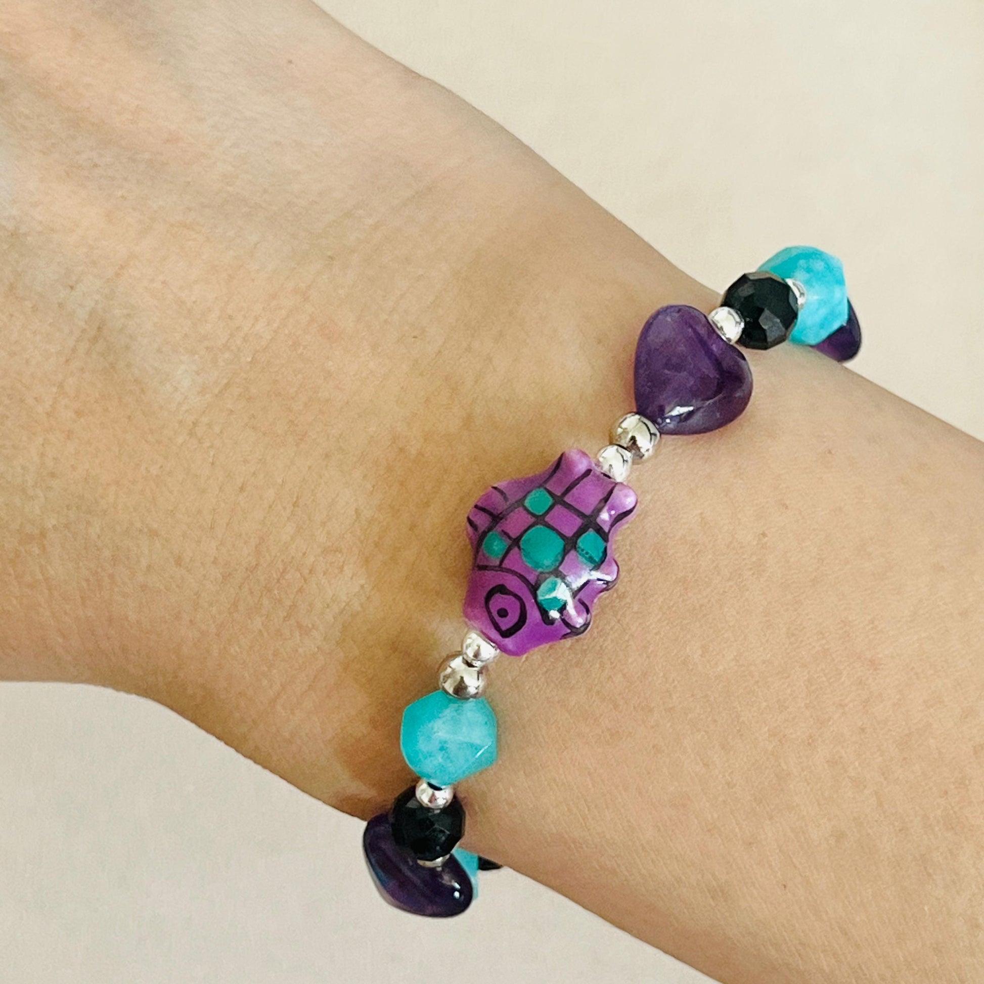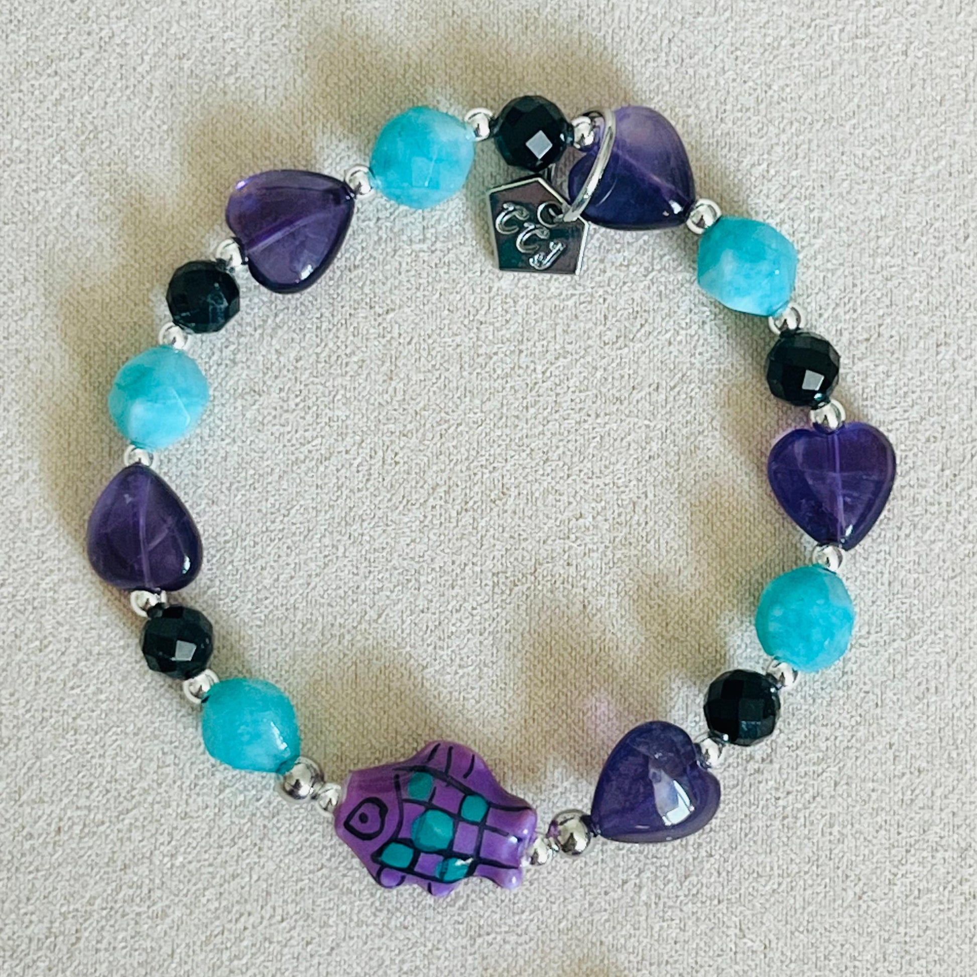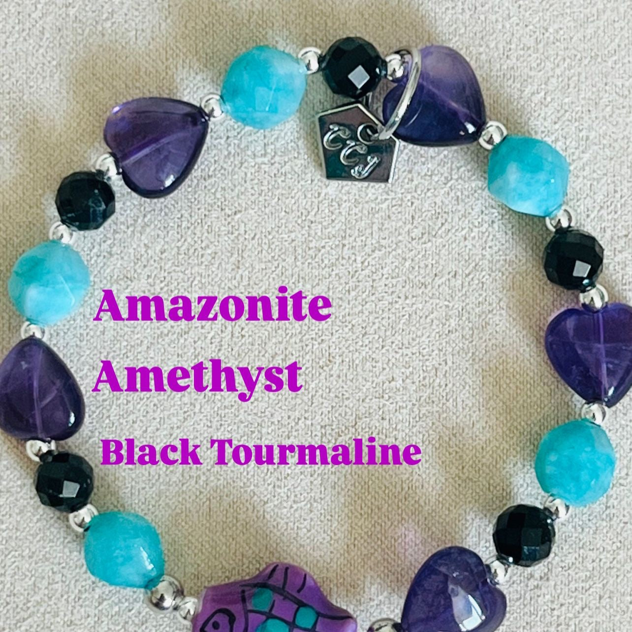 Amazonite, Amethyst & Black Tourmaline Grape Koi Bracelet