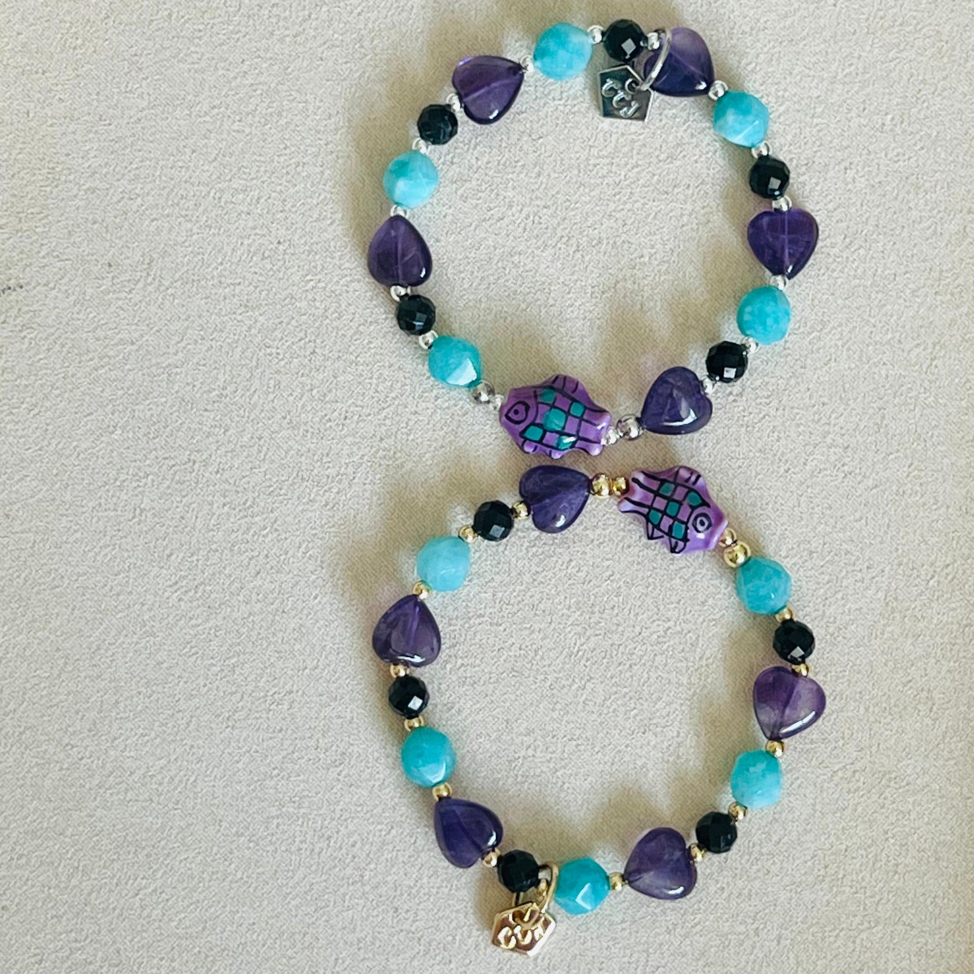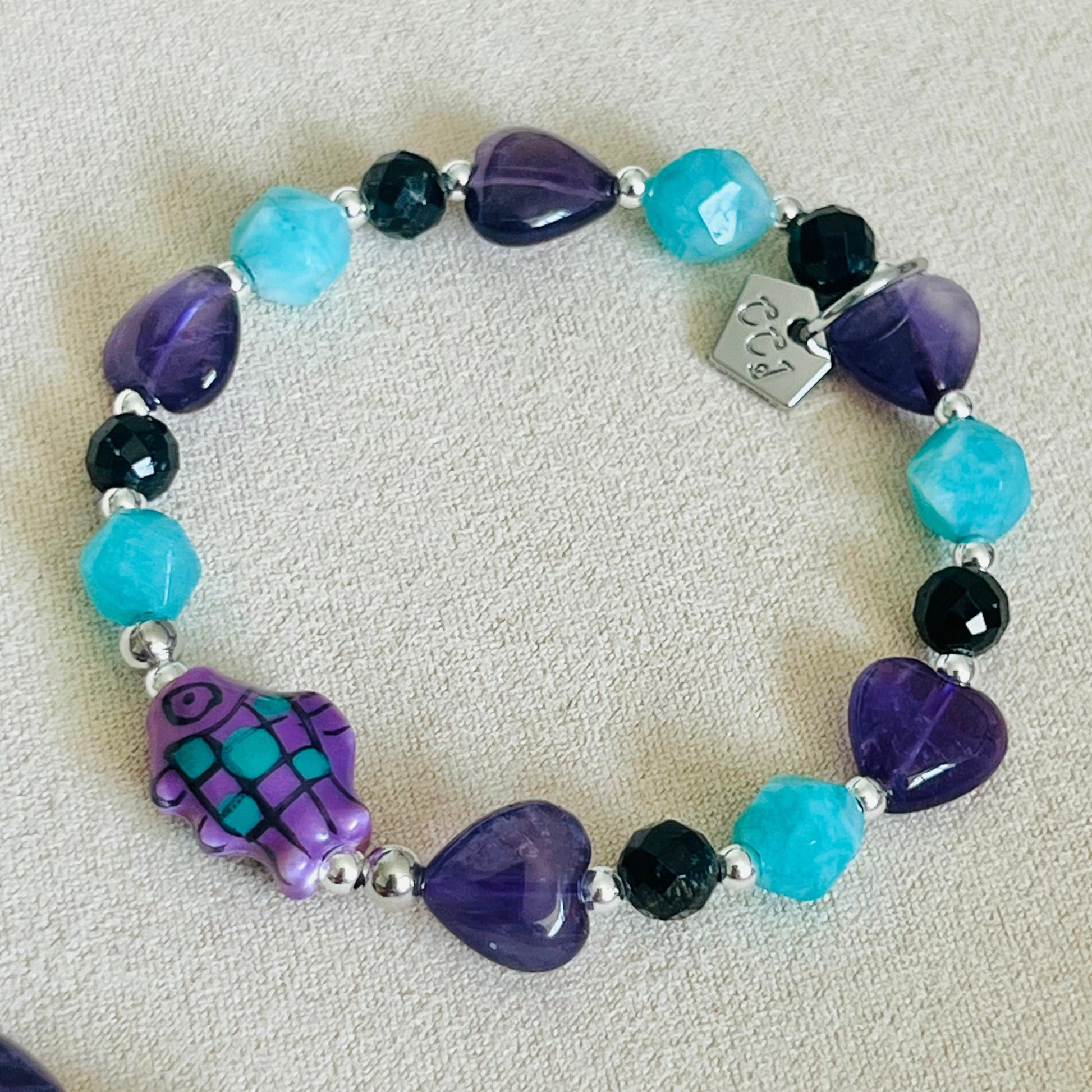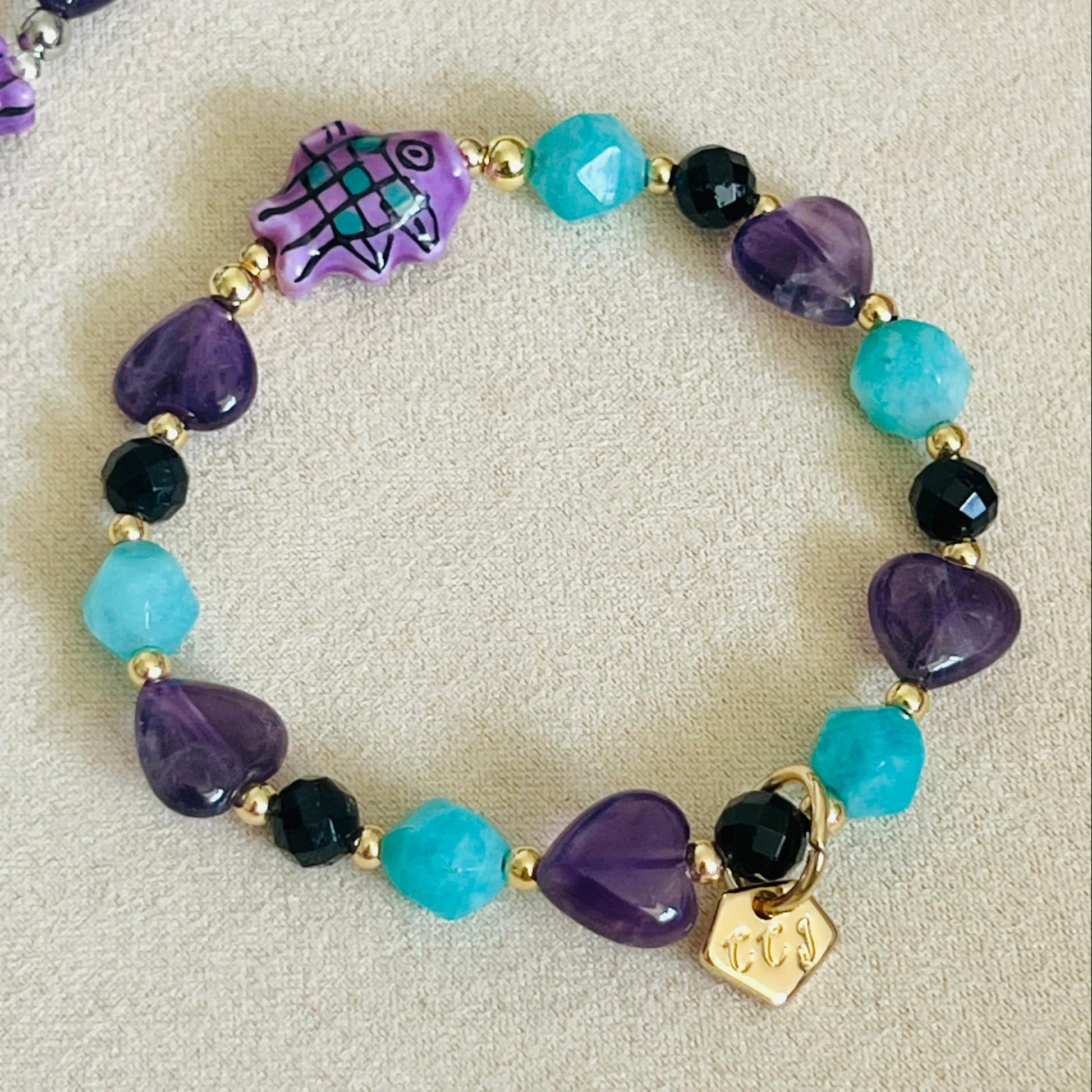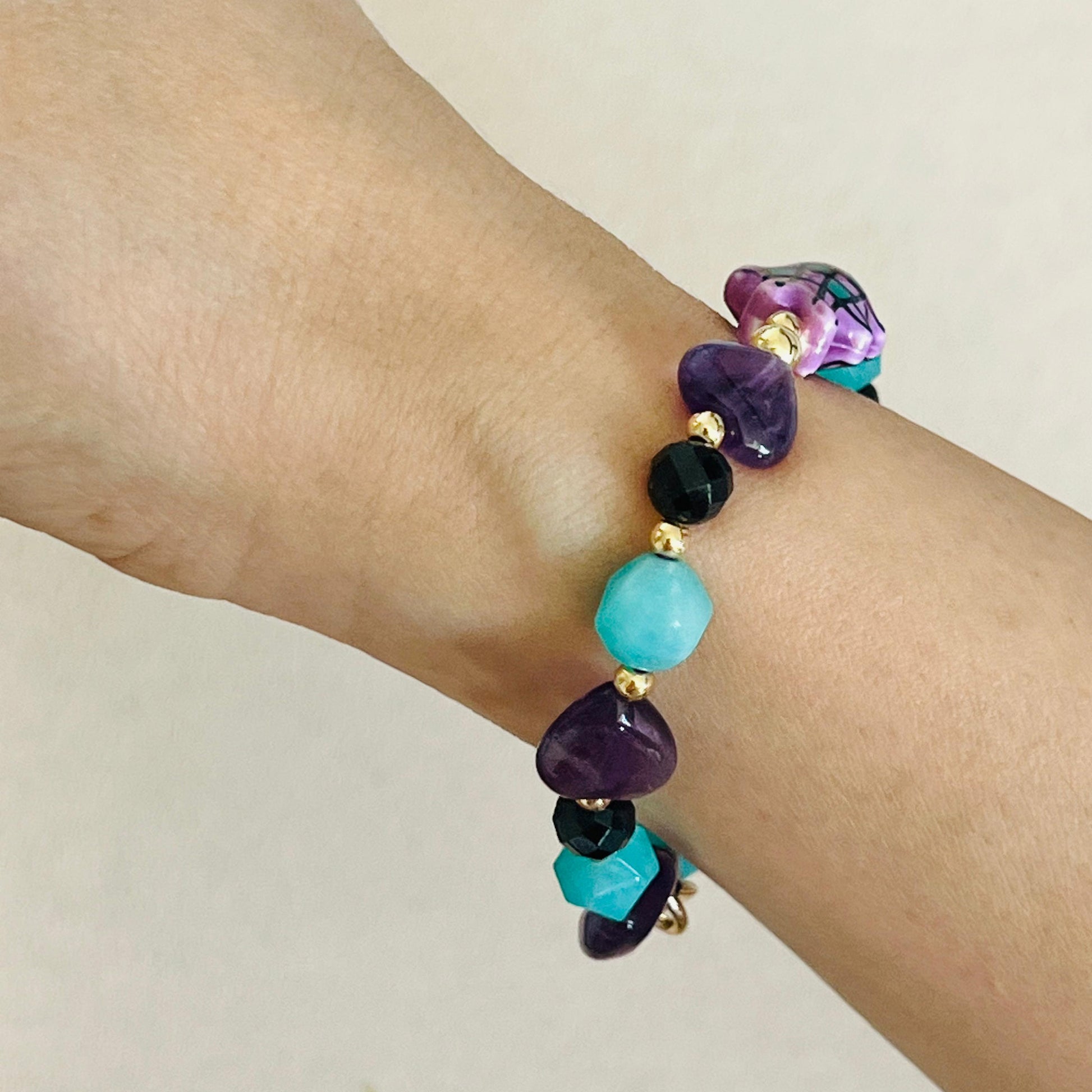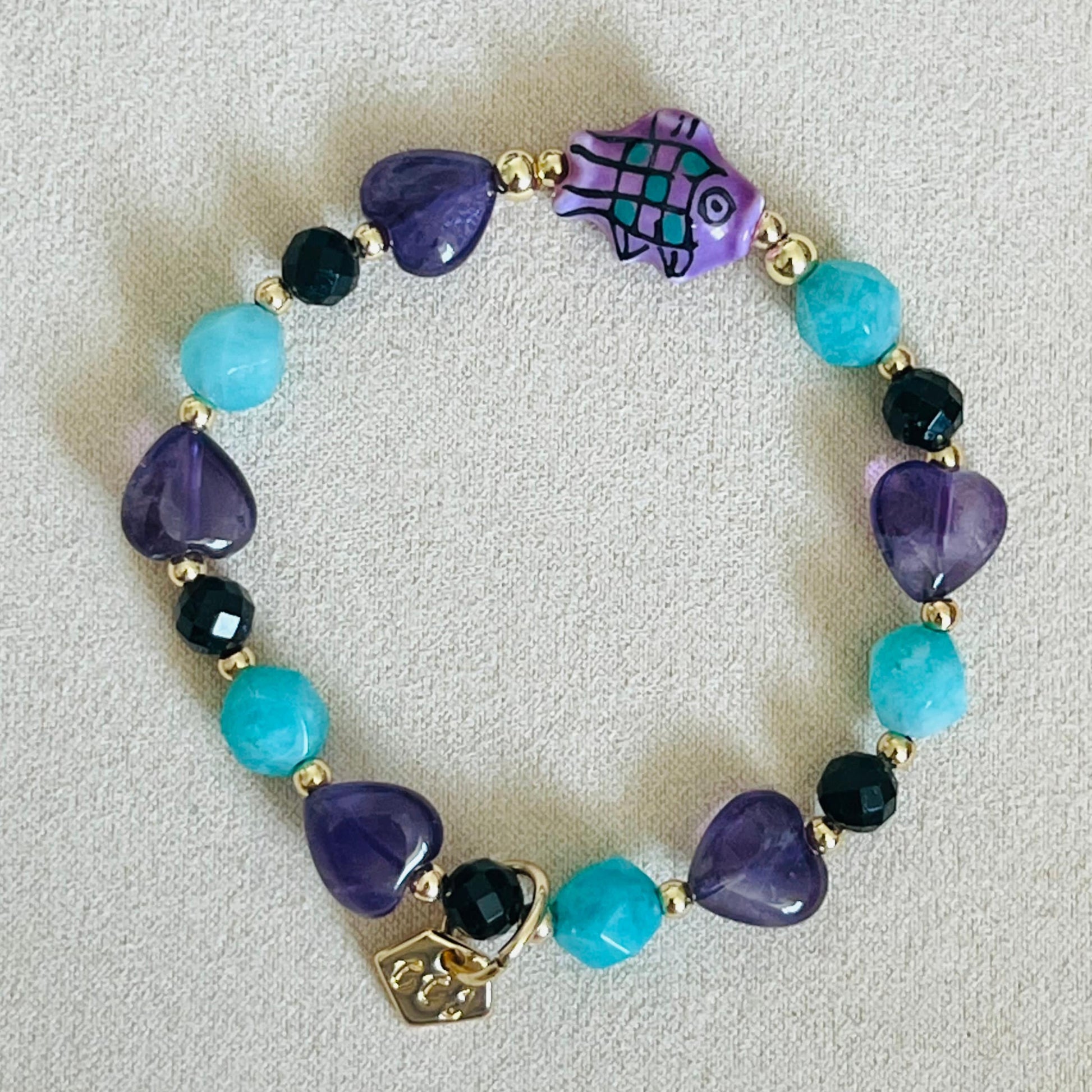 Amazonite, Amethyst & Black Tourmaline Grape Koi Bracelet