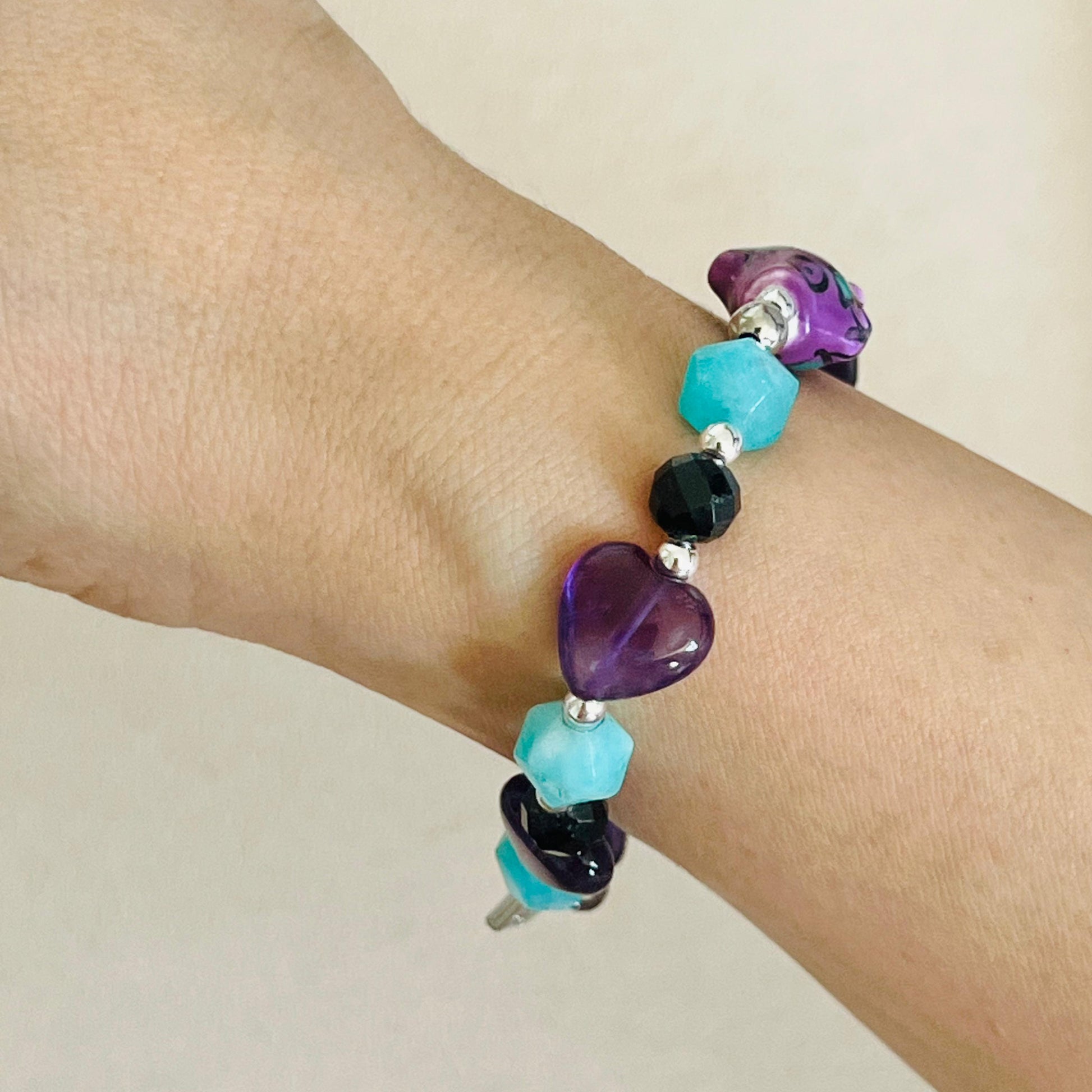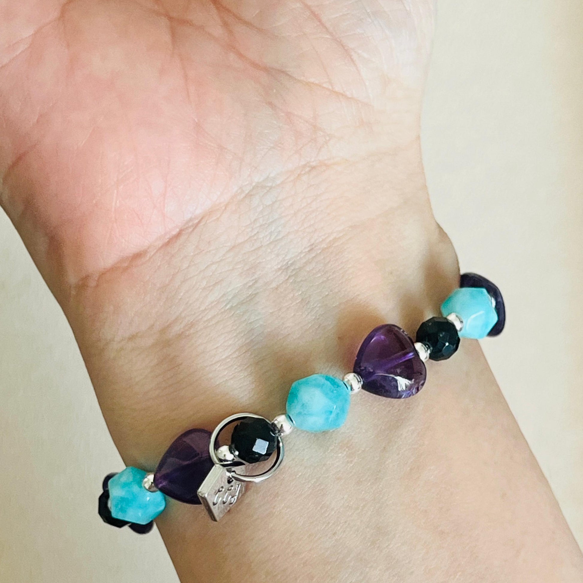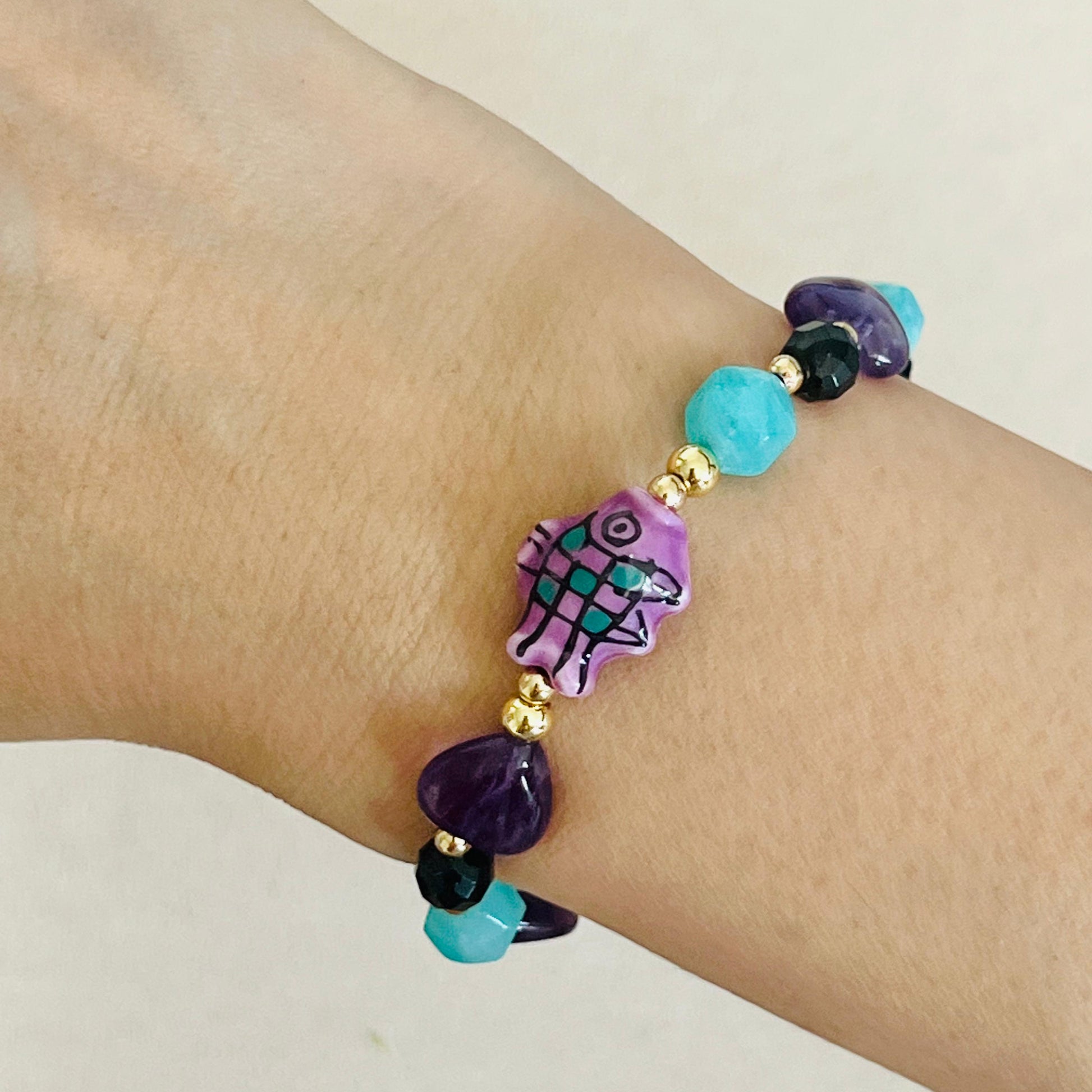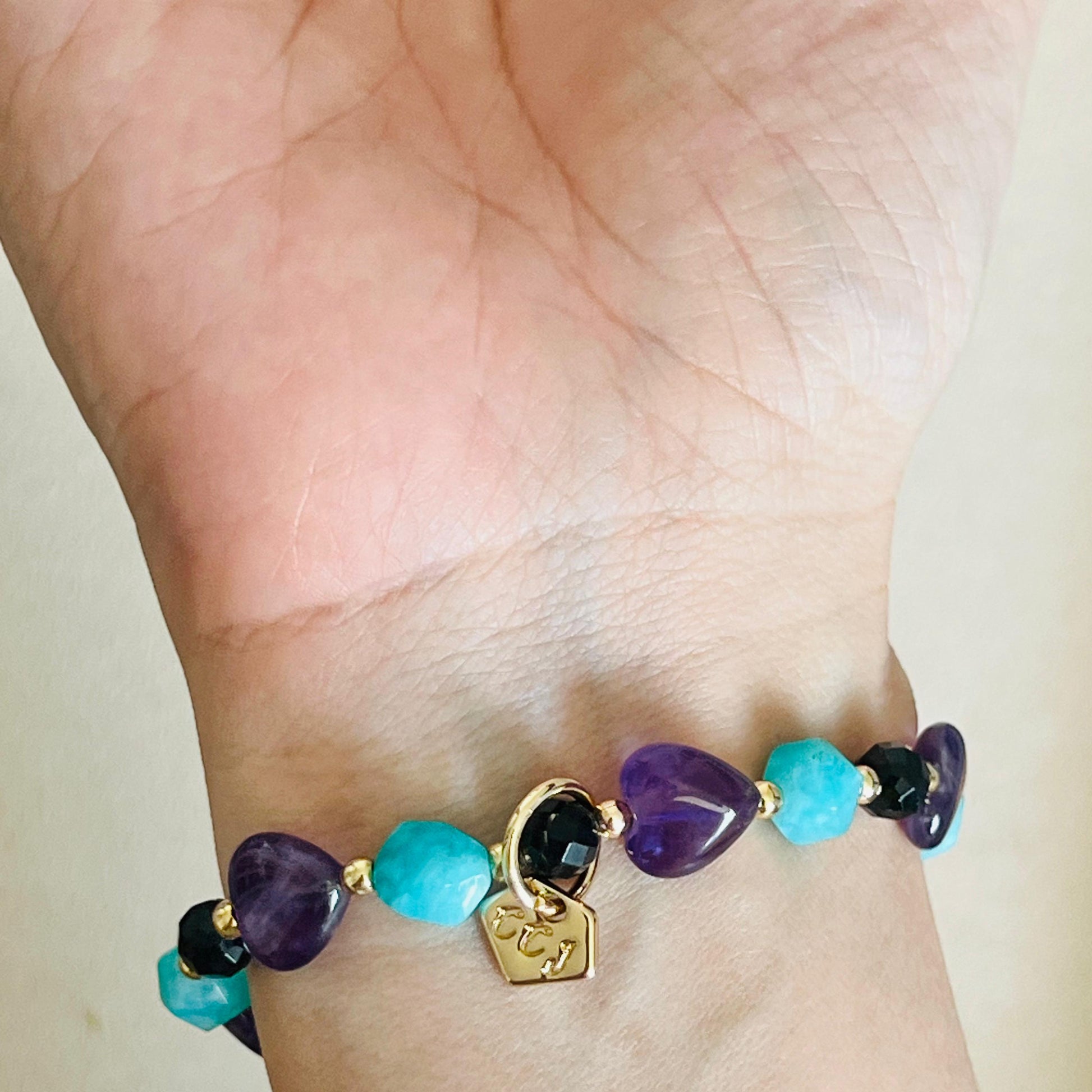 Amazonite, Amethyst & Black Tourmaline Grape Koi Bracelet