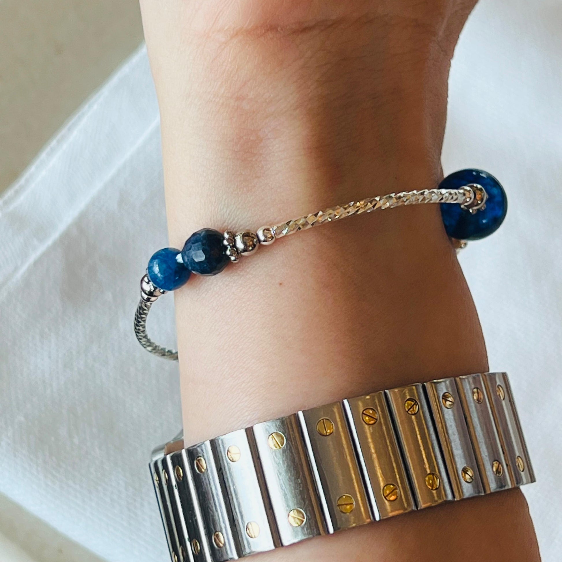*Do not wear the bracelet while showering or playing sports. Also, avoid contact with perfume if possible. Wipe the bracelet from time to time with a soft, dry cloth. Proper care will help to maintain the beauty of the bracelet.