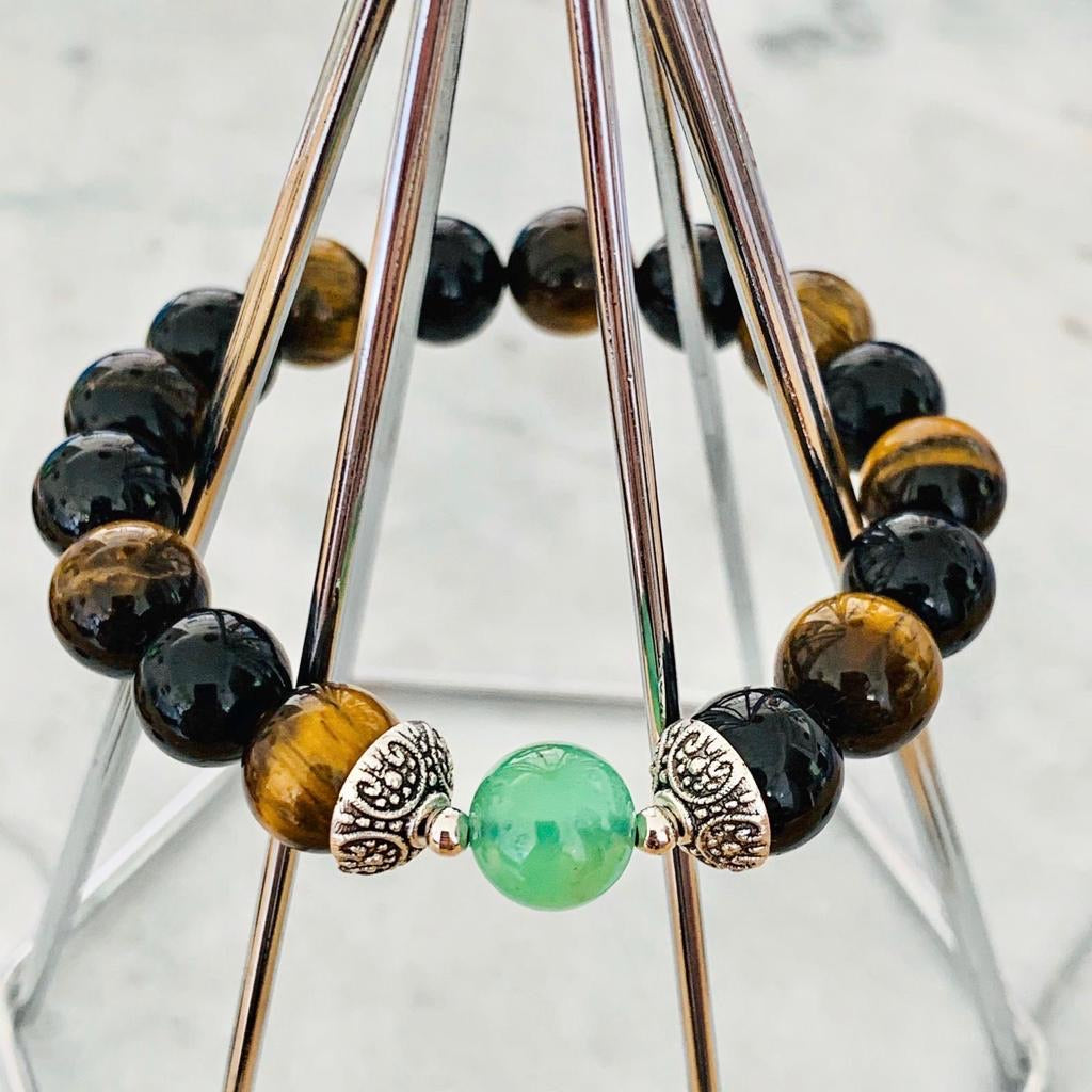 Chrysoprase, Black Tourmaline & Tigereye Men Bracelet