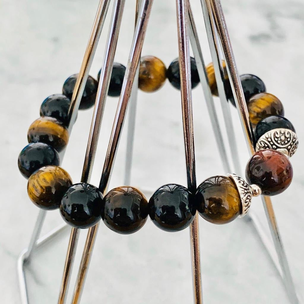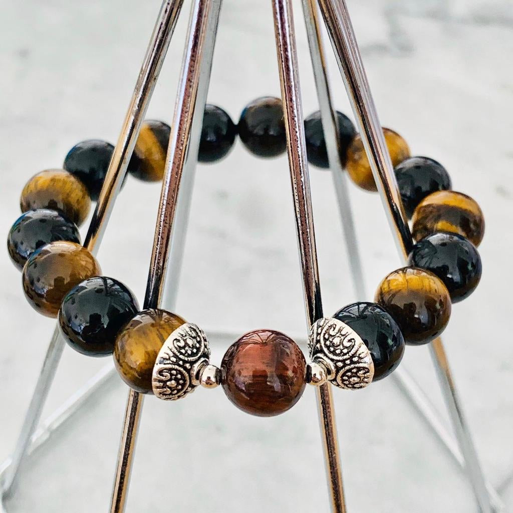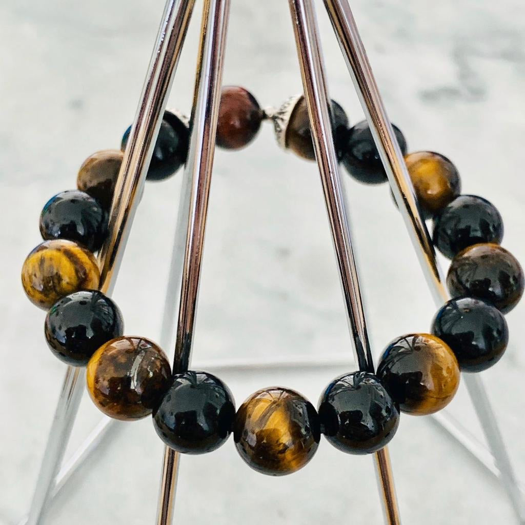 Red Tigereye, Black Tourmaline & Tigereye Men Bracelet