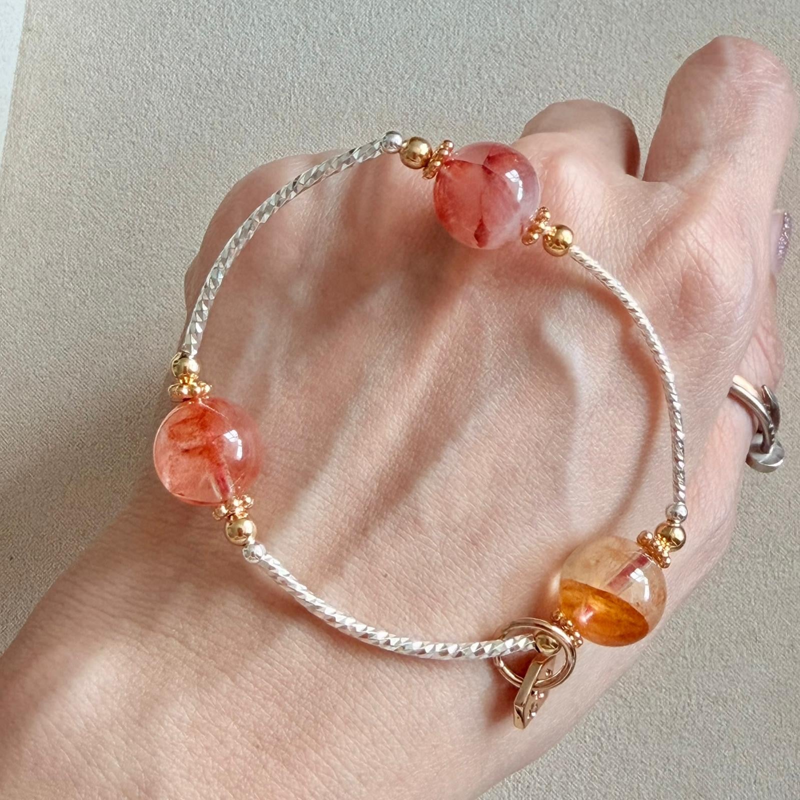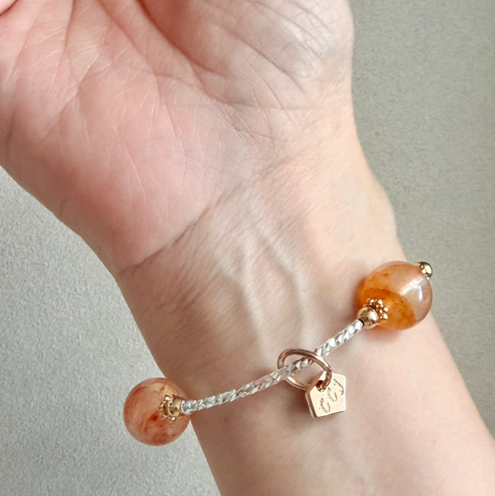 *Do not wear the bracelet while showering or playing sports. Also, avoid contact with perfume if possible. Wipe the bracelet from time to time with a soft, dry cloth. Proper care will help to maintain the beauty of the bracelet.