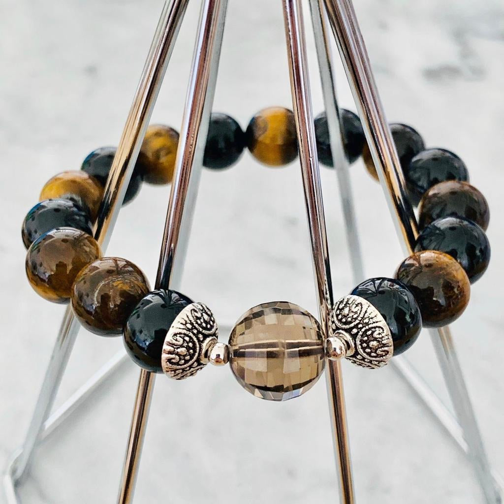 Smoky Quartz, Black Tourmaline & Tigereye Men Bracelet